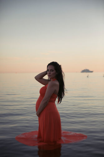 This beautiful mommy to be and I had a lot of fun with this water maternity shoot. We caught the last bit of warm water as the summer ended. I loved the moodiness brought to the shoot with the late evening glow, subtle pink and blue skies, boats sailing in the distance and a stunning mommy. The orange colour of Sammy’s dress complimented the sunset hue. The session was graceful, elegant and blessed.